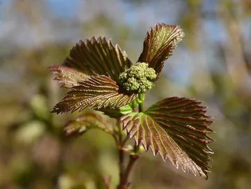 Viburnum dentatum 'JN Select', Zone 3-8, foliage emerges burgundy and turns dark green, white flowers and blue berries, low maintenance