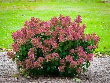 Hydrangea paniculata ‘Little Quick Fire’, Zone 3-8, 3-5 H x 3-5 W, early blooming white flowers turn to pink-red as summer progresses, drought tolerant