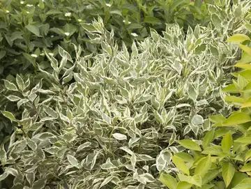 Cornus alba 'Elegantissima', Zone 2-8, Variegated leaves, attractive berries, stunning fall color and showy red stems in winter, very hardy