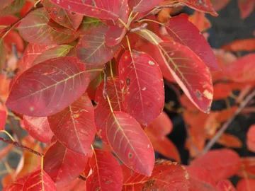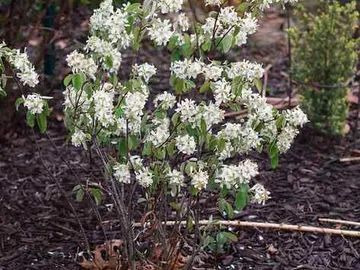 Amelanchier × grandiflora 'Autumn Brilliance', Zone 3-9, 20 H x 20 W, early spring flowers yield to small edible fruits in summer, fruits persist into winter, radiant orange-red fall color