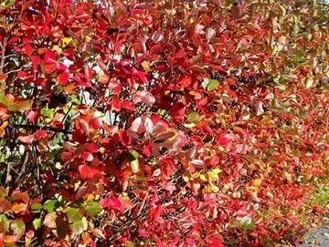 Aronia melanocarpa 'Autumn Magic', Zone 3-7, 4-6 H x 4-6 W, dark green foliage white flowers. Fall color mix of bright reds and dusky purples, black berry set holding well into winter