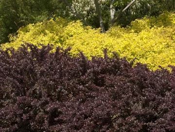 Berberis thunbergii 'Crimson Pygmy', Zone 4-8, 2 H x 3 W, dwarf, densely branched, deep crimson foliage a great contrast against light green or gold companion plants