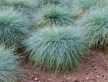 Festuca glauca ‘Elijah Blue’, Zone 3-8, Full sun to part shade, dense fine blue foliage, performs best in full sun and dry soil