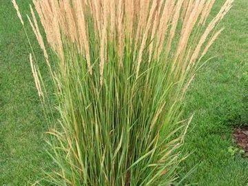 Calamagrostis acutiflora ‘Karl Foerster’, Zone 3-8, Full sun to part shade, silvery seed heads turn wheat colored and last into winter, upright clump